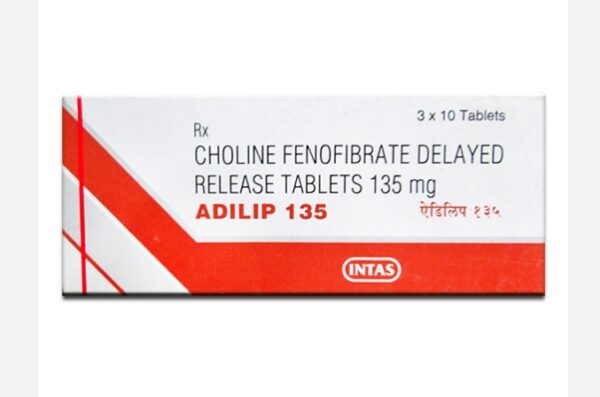 Adilip 135 Tablet DR is a medicine used to treat high cholesterol. This medicine helps by lowering triglycerides and “bad” cholesterol (LDL), while at the same time raising the levels of “good” cholesterol (HDL). Lowering cholesterol levels reduces the risk of heart attack and stroke.